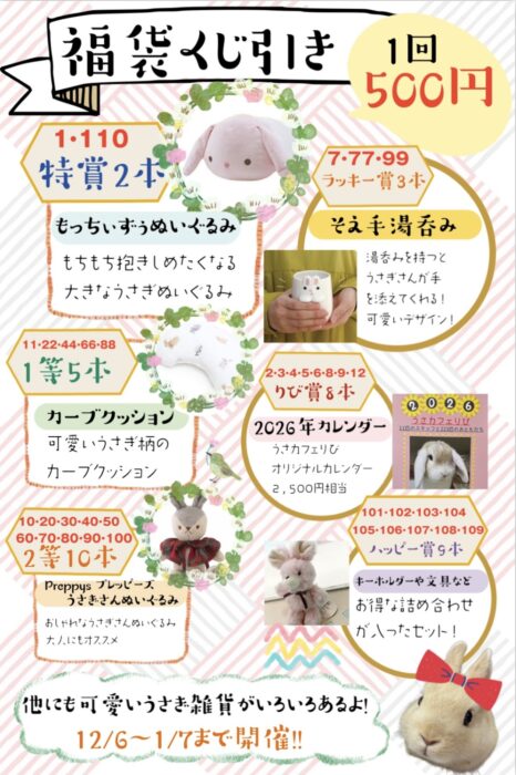 毎年恒例の福袋くじ引き・うさフンルーレットは12/6日より実施しております🎡