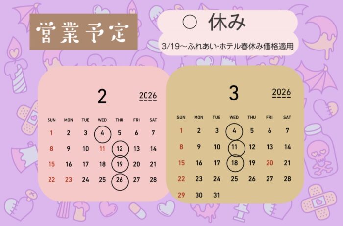 ⛄️2/1〜3/31までの営業予定✨※2/2更新